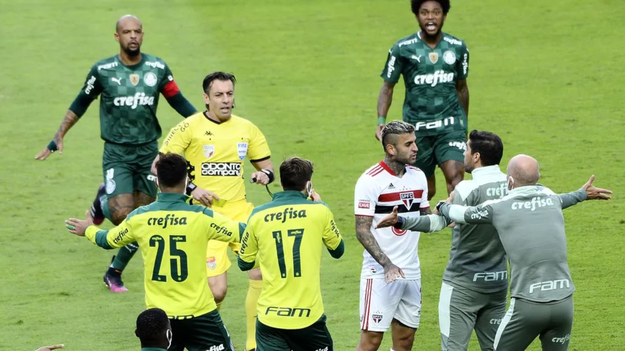 Durante a final do Campeonato Paulista de 2021, Abel Ferreira avançou em direção a Igor Liziero, jogador do São Paulo na época, após Liziero ter tido uma disputa de bola com Rony.
