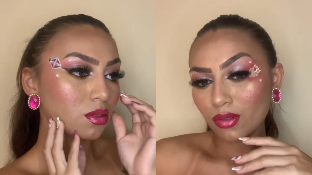 A maquiadora Ketilly Hunara, especialista em maquiagem social e artística, aposta alto em duas propostas que prometem brilhar nas comemorações. “Vamos ver muitas peles iluminadas, delineados marcantes e, claro, brilho! Não tem como falar de São João sem ele”, antecipa. Segundo ela, tons quentes como vermelho, laranja e nude alaranjado são os queridinhos da estação, tanto em versões mais sóbrias quanto nas mais ousadas, com toques neons.