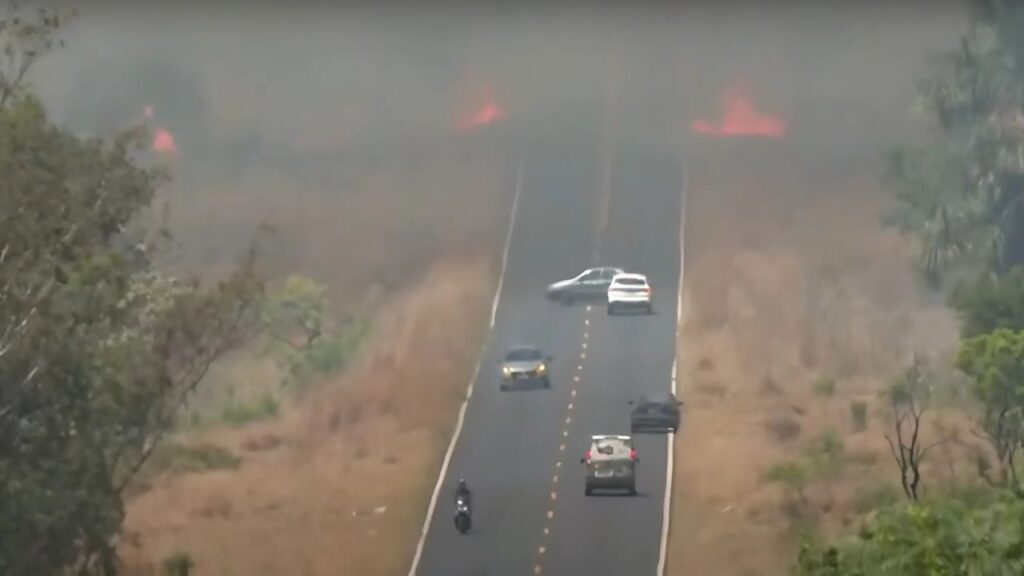 Motoristas, inclusive, deixaram de seguir caminho até o bairro Chácaras Panorama, no sentido contrário ao avanço do fogo.
