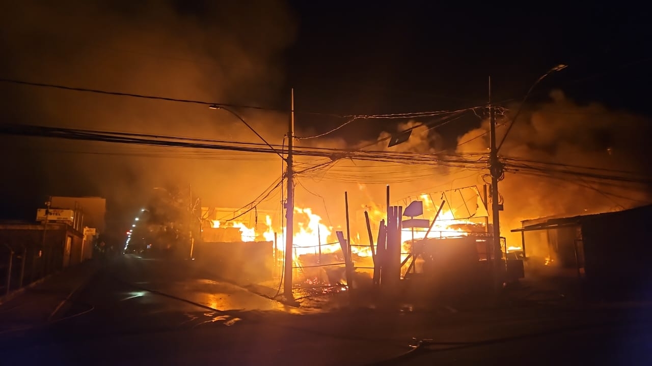 Um incêndio em madeireira de Uberlândia mobilizou equipes do Corpo de Bombeiros na madrugada desta sexta-feira (3), na avenida Afondo Pena, no bairro Brasil. O fogo começou em um galpão que funcionava como depósito de madeira e rapidamente se espalhou para outro imóvel vizinho, onde fica o depósito. As chamas consumiram grande parte da estrutura, que ficou totalmente comprometida, segundo a comandante do Corpo de Bombeiros, tenente-coronel Ana Paula.
