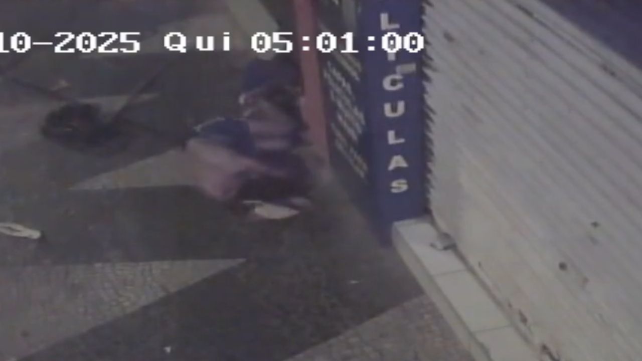 Um homem foi preso em flagrante após tentar arrombar o portão de uma loja na região central de Uberlândia e, ao perceber a chegada da polícia, ele fingiu que estava dormindo na calçada. O caso aconteceu na madrugada de quinta-feira (2), no cruzamento da avenida Floriano Peixoto com a rua Machado de Assis, e foi registrado em vídeo por câmeras de segurança.