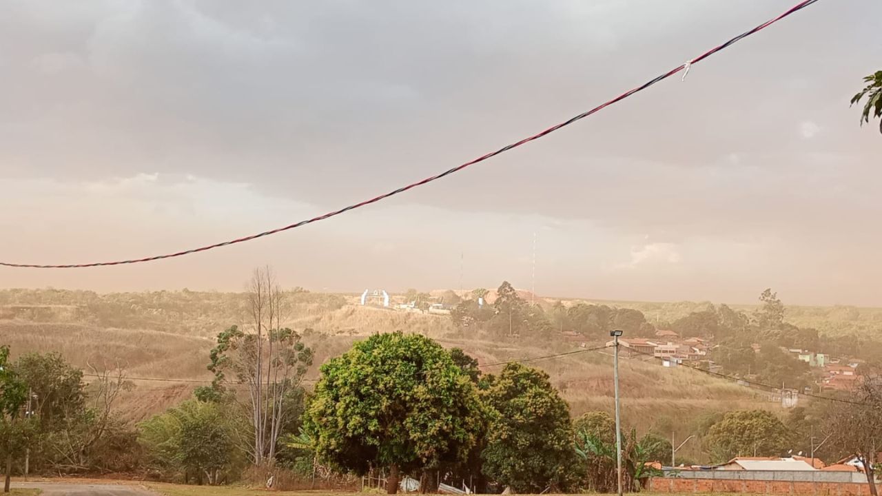 A chegada da chuva no Triângulo Mineiro nesta segunda-feira (28) foi acompanhada por um fenômeno que chamou atenção de moradores de Uberlândia, Romaria e Monte Carmelo: nuvens de poeira se espalharam pelo céu momentos antes da precipitação.