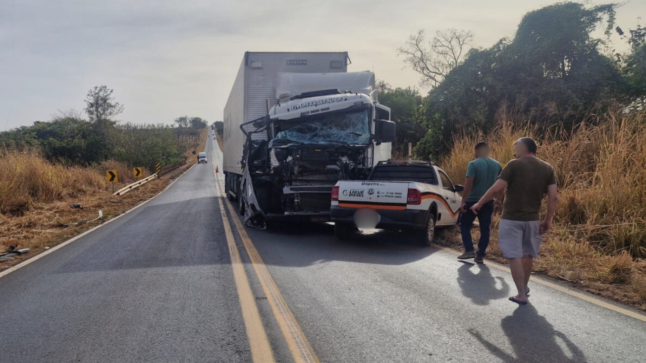 De acordo com o registro do Batalhão de Polícia Militar Rodoviária (PMRv), uma carreta carregada de calçados reduziu a velocidade ao se deparar com a ema na via. Nesse momento, outra carreta, que seguia no mesmo sentido Uberlândia–Prata, atingiu a traseira do primeiro veículo, perdeu o controle, invadiu a contramão e bateu com uma caminhonete que trafegava em direção contrária.